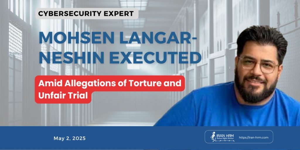 صبح چهارشنبه ۱۰ اردیبهشت ۱۴۰۴، محسن لنگرنشین، متخصص ۳۴ ساله امنیت سایبری، در زندان قزلحصار کرج اعدام شد. خبرگزاری میزان وابسته به قوه قضاییه، اتهام او را «محاربه و افساد فی‌الارض از طریق جاسوسی برای اسرائیل» اعلام کرده است. اما خانواده و وکلای لنگرنشین این اتهامات را رد کرده و می‌گویند او تحت شکنجه‌های شدید جسمی و روانی مجبور به اعترافات ساختگی شده بود.