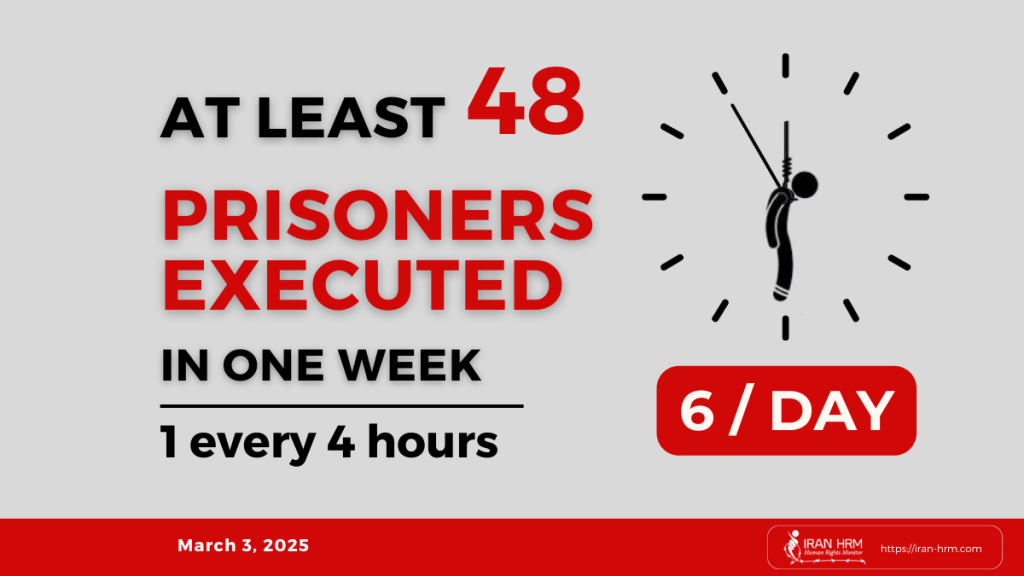 در روزهای منتهی به ماه مبارک رمضان، مقامات ایرانی موجی از اعدامهای دستهجمعی را در چندین زندان کشور اجرا کردند و دستکم ۴۸ زندانی را بین ۲ اسفند تا ۱۱ اسفند به دار آویختند. در میان اعدامشدگان، یک زن، یک پدر و پسر، و هفت زندانی بلوچ حضور داشتند که نگرانیها درباره هدف قرار گرفتن اقلیتهای قومی در ایران را افزایش داده است.