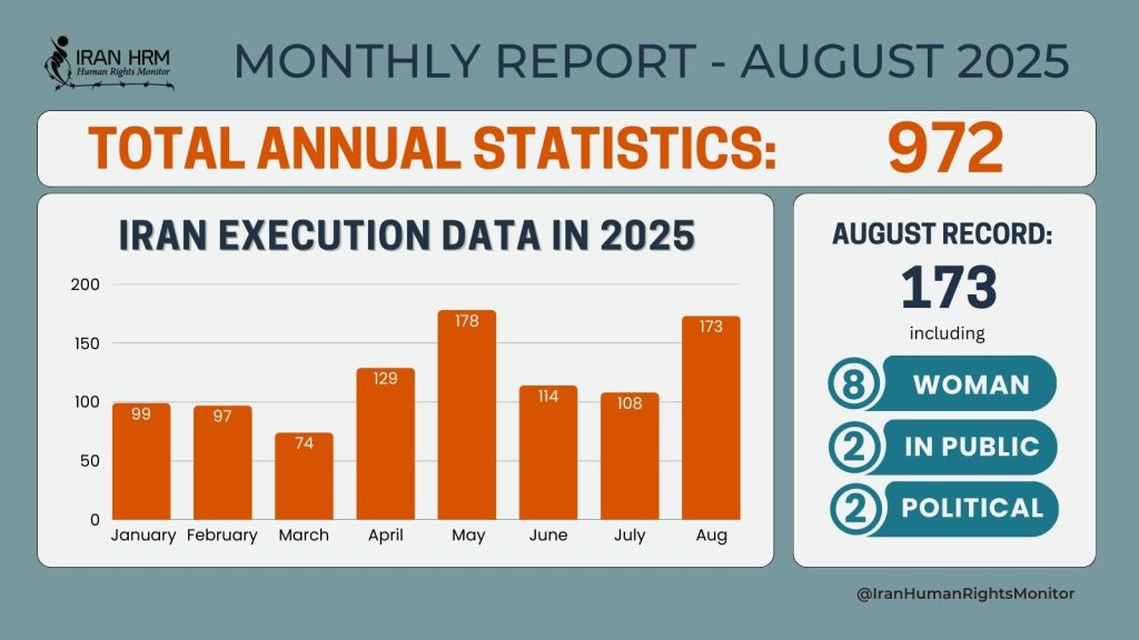 وضعیت حقوق بشر در ایران در اوت ۲۰۲۵ به شدت بدتر شد، و رژیم موجی بیسابقه از اعدامها، دستگیریهای خودسرانه، سوءاستفادههای قضایی و حتی تخریب آرامگاههای تاریخی را به کار گرفت.