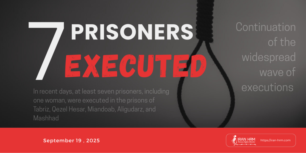 در روزهای اخیر، دستکم هفت زندانی از جمله یک زن در زندانهای تبریز، قزلحصار، میاندوآب، الیگودرز و مشهد اعدام شدند. به این ترتیب شمار اعدامها در شهریورماه ۱۴۰۴ به حداقل ۱۶۱ مورد رسیده است؛ آماری که نگرانیها درباره شدت گرفتن موج اعدامها در ایران را افزایش میدهد.