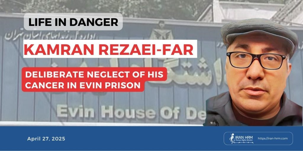 جان زندانی سیاسی، کامران رضایی فر، ۵۹ ساله، در پی ممانعت مقامات زندان اوین از اعزام وی به بیمارستان و جلوگیری از آغاز شیمیدرمانی، بهشدت در خطر است. به گفته منابع مطلع، دستگاه قضایی و مسئولان زندان اوین با بیتوجهی عمدی، سلامت و جان او را در معرض تهدید جدی قرار دادهاند.