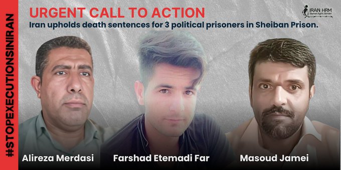 احکام اعدام سه زندانی سیاسی فرشاد اعتمادیفر، مسعود جامعی و علیرضا مرداسی در زندان شیبان اهواز تأیید و به آنان ابلاغ شده است. این احکام پس از بازداشتهای طولانیمدت، شکنجه، اعترافات تحت فشار، بیماری و محرومیت از دادرسی عادلانه صادر شده و اکنون نگرانیها درباره اجرای قریبالوقوع آنها افزایش یافته است.