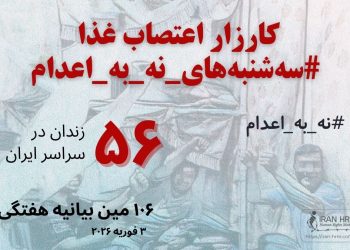 کارزار “سهشنبههای نه به اعدام” روز سهشنبه ۵ اسفند ۱۴۰۴ در هفته صدونهم در ۵۶ زندان زیر در اعتصاب غذا میباشد: