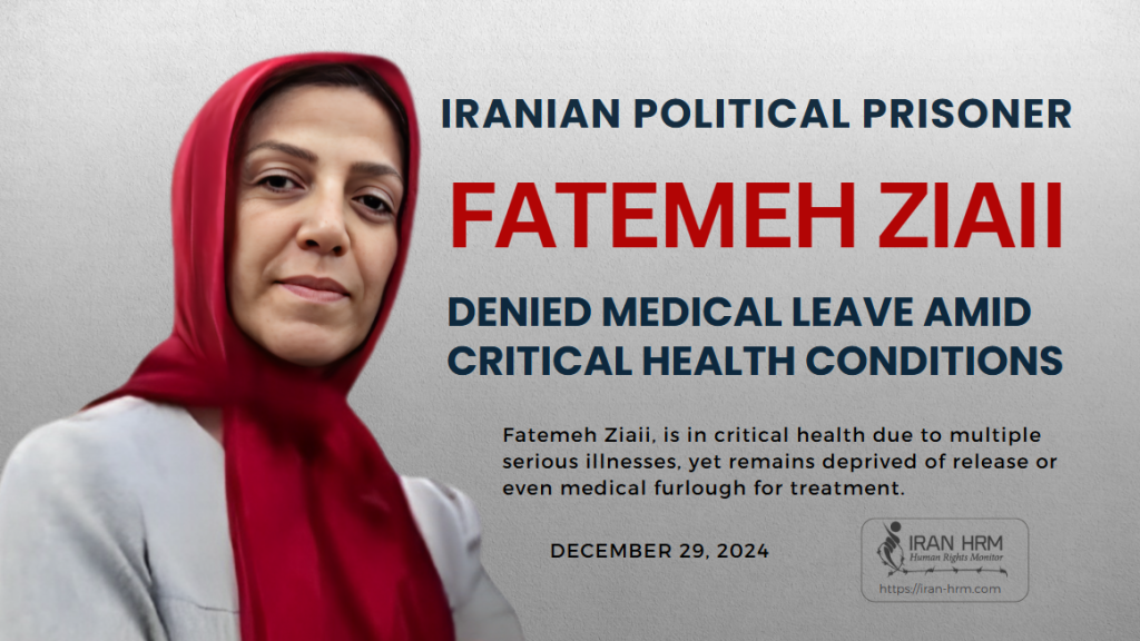 فاطمه ضیایی (حوری ضیایی)، زندانی سیاسی در ایران، با وجود ابتلا به بیماریهای جدی و شرایط بحرانی جسمانی، همچنان از آزادی یا حتی مرخصی درمانی برای دریافت مراقبتهای پزشکی محروم است.