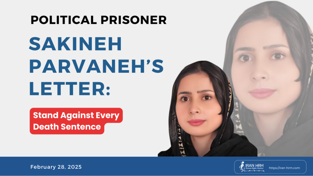 این زندانی سیاسی در نامهای، ضمن محکوم کردن احکام اعدام برای مهدی حسنی، پخشان عزیزی و بهروز احسانی، خواستار لغو مجازات اعدام شد. در بخشی از نامه خود مینویسد: