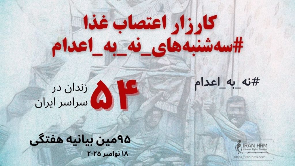 کارزار «سهشنبههای نه به اعدام» سهشنبه ۲۷ آبان ۱۴۰۴ در هفته نودوپنجم در ۵۴ زندان زیر در اعتصاب غذا میباشند: