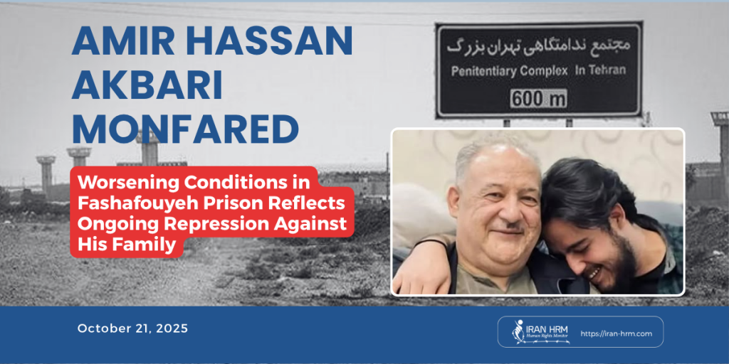 گزارشهای دریافتی از زندان فشافویه تهران حاکی از وخامت وضعیت جسمی و روحی امیرحسن اکبری منفرد، زندانی سیاسی ۲۳ ساله، است که بیش از نه ماه است بدون حکم قطعی و بدون دسترسی به وکیل در بازداشت بهسر میبرد. این جوان زندانی در حالی در شرایطی غیرانسانی و پرخطر نگهداری میشود که پدر سالخوردهاش، محمدعلی اکبری منفرد، نیز با وضعیت وخیم جسمی در بیمارستان تحت مراقبتهای امنیتی قرار دارد و خواهر او، مریم اکبری منفرد، در زندان قرچک ورامین از ابتداییترین حقوق درمانی محروم است.