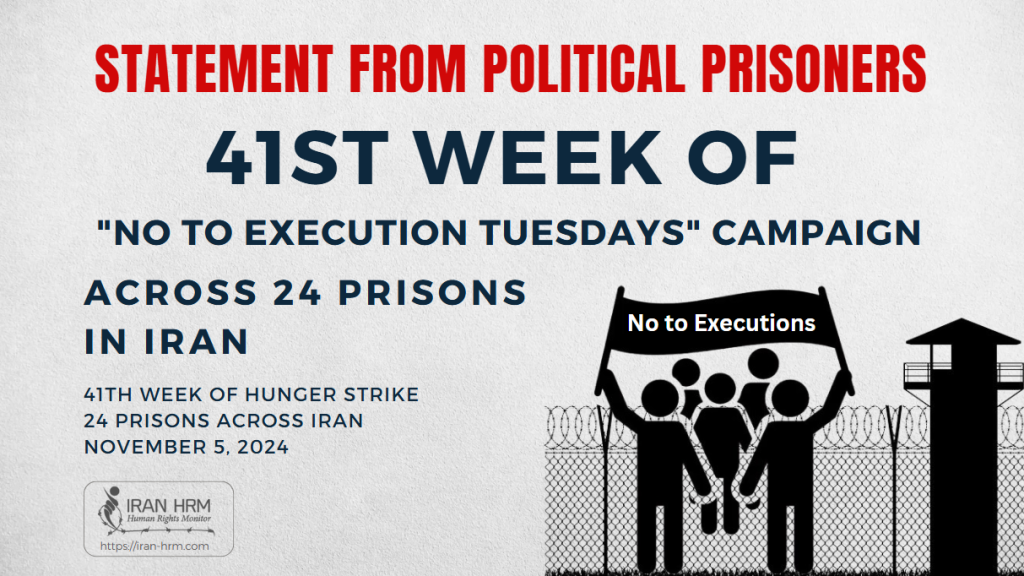 کارزار “سهشنبههای نه به اعدام” در هفته چهل و یکم روز سهشنبه ۱۵ آبان در ۲۴ زندان مختلف در اعتصاب خواهند بود.