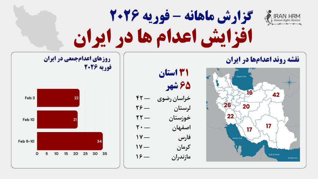 ماه فوریه ۲۰۲۶ با افزایش بیسابقه اعدامها، سرکوب وحشیانه مخالفان و ادامه استفاده سیستماتیک از شکنجه و بازداشتهای خودسرانه توسط رژیم آخوندی همراه بوده است. اتکای مداوم رژیم به مجازات اعدام به عنوان ابزاری برای سرکوب سیاسی و ایجاد وحشت به سطوح هشداردهندهای رسیده.