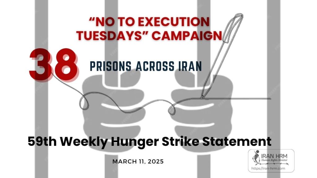 کارزار”سهشنبههای نه به اعدام” سهشنبه ۲۱ اسفند ۱۴۰۳ در هفته پنجاه و نهم در ۳۸ زندان زیر در اعتصاب غذا خواهند بود: