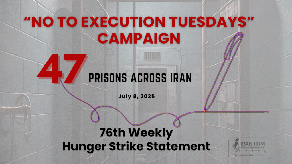 زندانیان در کارزار “سهشنبههای نه به اعدام”، روز سهشنبه ۱۷ تیر ۱۴۰۴، در هفته هفتاد و ششم، در ۴۷ زندان زیر در اعتصاب غذا میباشند: