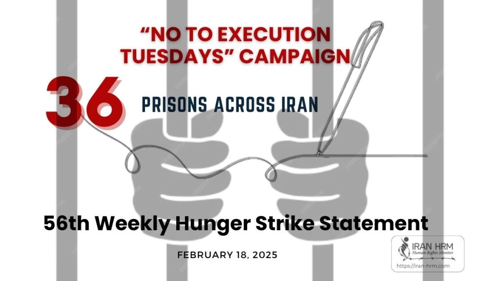 کارزار “سهشنبههای نه به اعدام” سهشنبه ۳۰ بهمن ۱۴۰۳ برای پنجاه و ششمین هفته پیاپی در ۳۶ زندان زیر در اعتصاب غذا خواهند بود: