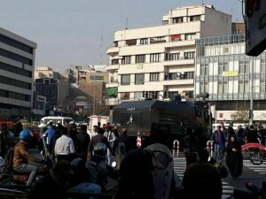 تهران در چهار راه ولی عصر نیروهای ضدشورش مجهز به ماشین های آبپاش جهت سرکوب مردم معترض مستقر شدند. نیروهای ضد شورش شماری از معترضان را به شدت مضروب و دستگیر كردند.